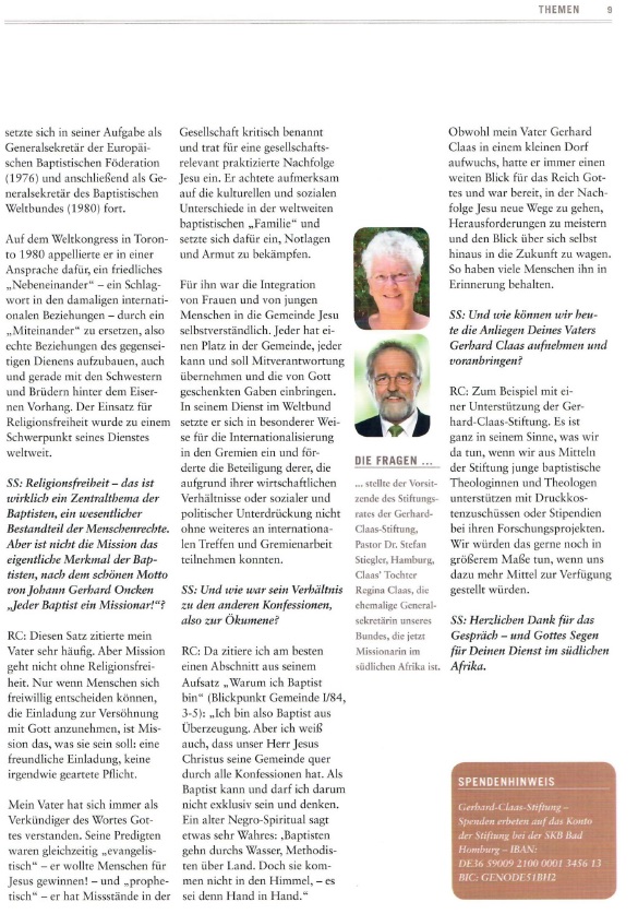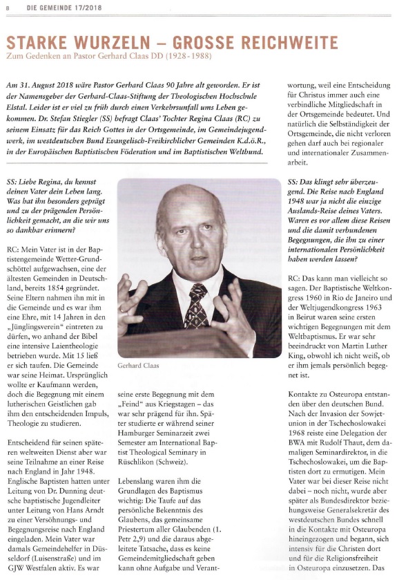 Zur Erinnerung an Gerhard Claas erschien im Jahr 2018 in der Zeitschrift "Die Gemeinde" das folgende Interview:
